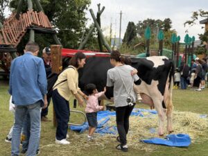 この企画は三つの幼稚園の合同イベントで園のPTA会長を務める会津中央乳業の二瓶さんから「是非ともホンモノの牛に触れさせてあげたい」という願いが込められた企画でした。