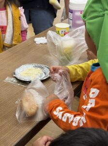 バター作り体験のために園長先生が朝4時起きして300個クロワッサンを焼いてくださり、出来たばかりのフレッシュバターを美味しく試食することができました。