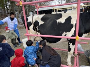 スタッフは交牧連会員4名と少人数でしたが、宮城県加美農業高校の生徒さん20名にリードしてもらって賑やかでエネルギッシュなモーモースクールとなりました。